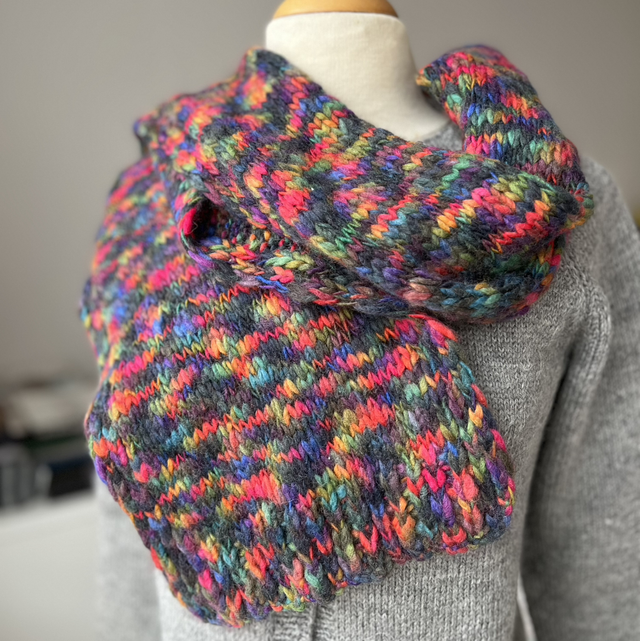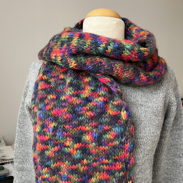 Belle écharpe 100% laine multicolore tricotée main. Sa laine chunky vous plaira par son volume et sa légèreté. Sa taille 24x148 cm, vous plaira pour la porter sur votre manteau.